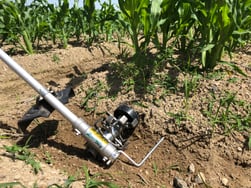 地表の雑草を細かく粉砕するうね草取りまーのバッテリー仕様。住宅街でも気兼ねなく作業可能。エンジン騒音がゼロなので涼しい朝からスピーディに除草できます。