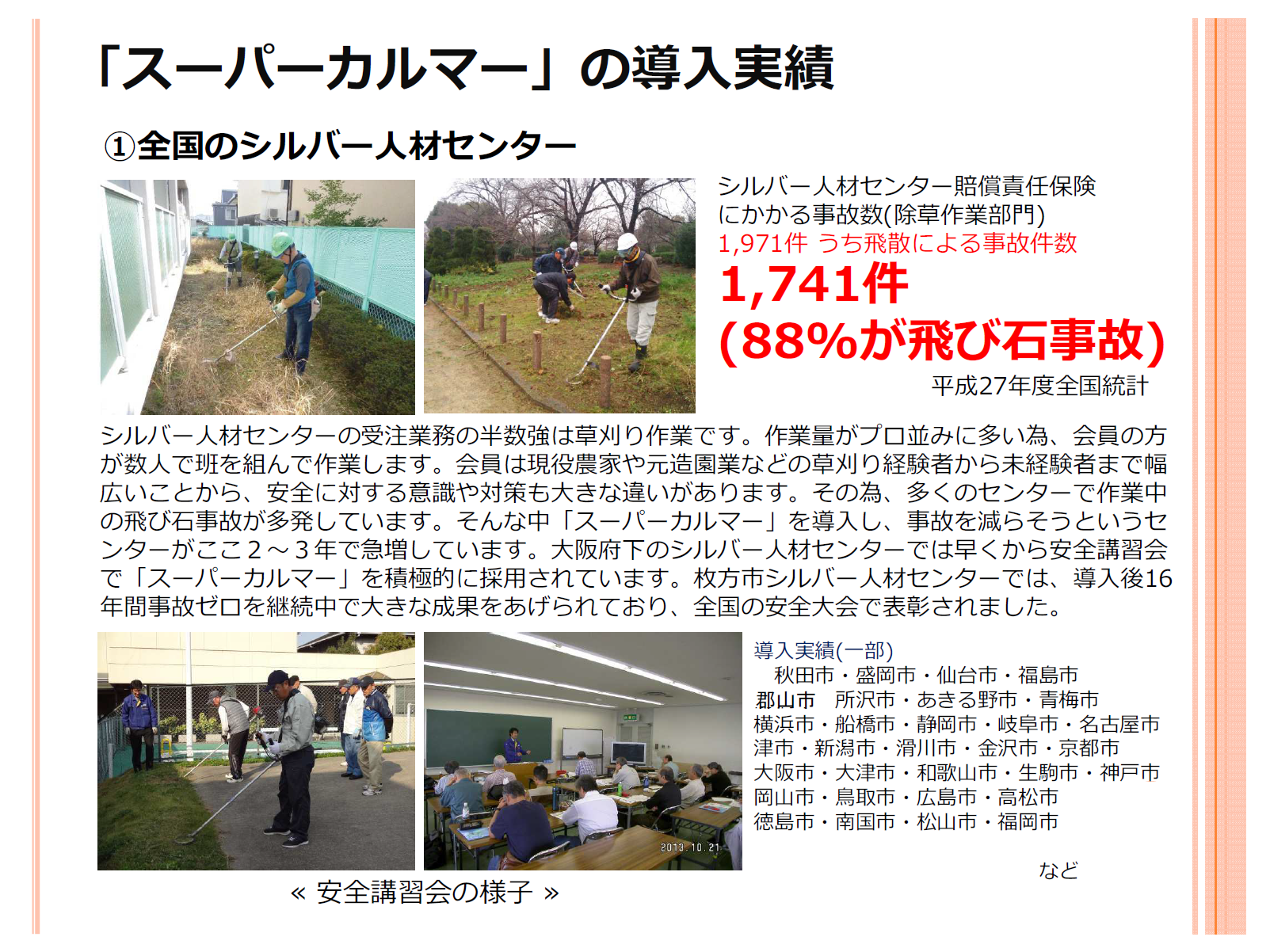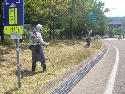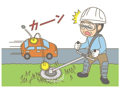《回転ハサミ刈りで飛び石事故を未然に防ぐ》