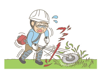 金属刃は「飛散」だけではなく「キックバック」の危険性も課題となっており、賠償事故にとどまらず、人身事故につながる恐れのある刈刃として、取り扱いには十分な注意が必要です。